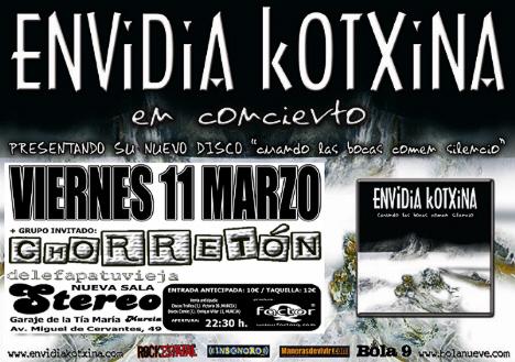 Hay que adaptarse a los tiempos. Cuando empezamos, la información se movía en los fanzines y ahora lo que funciona es internet. Cualquier canal que acerque a la gente está bien. Además las redes funcionan en los dos sentidos, nos sirven para informar de los conciertos y los movimientos de la banda pero también nos permiten conocer la opinión de la peña. Nuestra dirección para la gente que quiera pasarse por ahí es: www.facebook.com/envidia.kotxina. También nos podéis seguir en www.myspace.com/envidiak o en www.envidiakotxina.com.