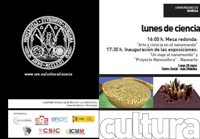 Investigadores y un artista participarán mañana, 28 de marzo, en uno de los ‘lunes de ciencia’ de la Universidad de Murcia. El investigador del Consejo Superior de Investigaciones Científicas, Pedro Amalio Serena, el artista Juan Antonio Lleó y el profesor de física de la UMU, Jaime Colchero, debatirán sobre el ‘arte de la ciencia y el nanomundo’. En declaraciones a Zarangollo.com del coordinador de la actividad, Antonio Guirao, ha explicado que se trata de una iniciativa “que venimos celebrando desde hace ya cuatro años. Es un ciclo con continuidad a lo largo del año, en el que al menos un lunes al mes, tocamos temas científicos de interés general y con un tratamiento divulgativo para todo tipo de público”