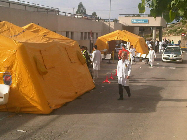 Una zona catastrófica a causa de dos fuertes terremotos de 4,4 y 5,1 grados con 44 réplicas. Finalmente, Sanidad confirma que son 9 los fallecidos, 300 los heridos de diversa consideración, 20.000 viviendas destrozadas, el 80% de los inmuebles de Lorca que ha provocado que 30.000 lorquinos durmieran anoche en la calle. Estas son las escalofriantes cifras que han provocado que la ciudad del sol se haya transformado hoy en una ciudad fantasma. Poca gente es la que pasea por sus calles, muchos vecinos permanecen “recluidos” en el recinto Santa Quiteria o han huido del municipio. Ante el temor de nuevas réplicas psicólogos de Murcia, Valencia y Barcelona atienden a todos los afectados.