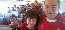 Uno de los ingredientes de esta temporada murcianista ha sido la comunión entre equipo y afición. Esto se ha reflejado esta tarde con cientos de forofos que han apoyado al Real Murcia en el decisivo encuentro. Cerca de 500 aficionados ha presenciado el partido en directo en el Ángel Carro. A primera hora de la mañana salieron tres autobuses hacia Galicia y un avión con 168 aficionados. A estos se han sumado los que han pasado el fin de semana en Lugo y se han desplazado en sus coches particulares.