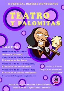 Las noches estivales de Murcia se harán más llevaderas gracias a un ciclo de teatro al aire libre. La Escuela de Arte Dramático de Murcia abrirá sus puertas desde la semana que viene para acoger el II Festival ‘Teatro y Palomitas’ dedicado a Desiree Montesinos. Se trata de un evento en el que por el módico precio de 5 euros, el que asista podrá disfrutar de un montaje teatral con palomitas y refresco incluido.