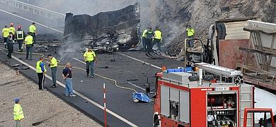 La Guardia Civil acordona un perímetro de 600 metros en el kilómetro 4 de la carretera A-91, que conecta Lorca con el norte de Almería. Es una de las primeras medidas adoptadas, después de que a las 9:50 explotara la cisterna de un camión, con 46 metros cúbicos de gas natural licuado, a la altura de la pedanía lorquina de Zarzalica. A las 8:15 a se ha producido una colisión por alcance entre un camión cisterna y otro que transportaba placas de cemento. A causa de la deflagración ha fallecido el conductor del camión de gas. El otro conductor ha sido atendido por una crisis de ansiedad y trasladado al hospital Rafael Méndez de Lorca por un traumatismo.