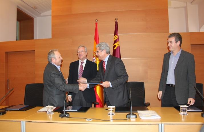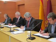 Favorecer la creación de empleo y un mayor crecimiento económico con la elaboración de una Ley de la Función Pública. Es el objetivo que se han marcado el Ejecutivo Regional y agentes sociales, quienes han suscrito hoy un acuerdo que incluye un plan para encontrar nuevos nichos de empleo, colaboraciones públicas y privadas, y actuar sobre la economía irregular. Tras la tensión vivida durante el año pasado con el tijeretazo de la Comunidad, los sindicatos han rubricado el documento. Los secretarios generales, Antonio Jiménez de UGT y Daniel Bueno de CCOO, han explicado que se trata de una hoja de ruta y «una declaración de guerra contra el deterioro económico».
