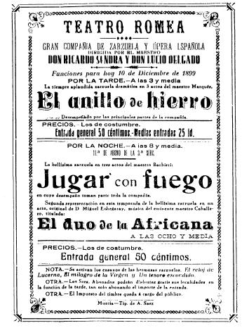 El teatro Romea previsiblemente abrirá sus puertas el 3 de marzo, con motivo de una gala solidaria de ‘Proyecto Hombre’. Después de permanecer cerrado durante cuatro años, en 2012 los murcianos podrán disfrutar nuevamente de él. Un espacio escénico cargado de historias, dos de ellas fueron los graves incendios que sufrió el 8 de febrero de 1877 y el 10 de diciembre de 1899. El nexo entre los dos siniestros, fue que el fuego se inició en el escenario y se propagó a la parte central. En 1877, la causa aparente fue una bengala mal apagada y en 1899 un cortocircuito.